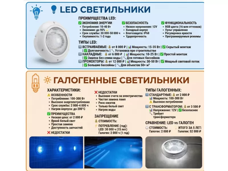 Вопрос 1: Можно ли заменить лампу в бассейне, не сливая воду? Ответ: Да, конструкция большинства встраиваемых прожекторов (стандарта PAR56) позволяет вынуть вставку с лампой и поднять её на бортик благодаря запасу кабеля в закладной. Сливать воду в 90% случаев не требуется.