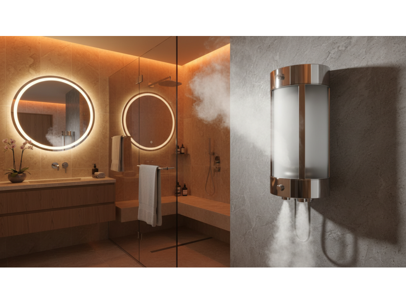 Парогенератор — это электрический прибор, который превращает воду в насыщенный пар и подает его в помещение хаммама через паровую форсунку. В отличие от традиционной русской бани, где влажность достигается за счет полива камней, в турецкой бане пар создается автоматически — именно поэтому без парогенератора хаммам невозможен.