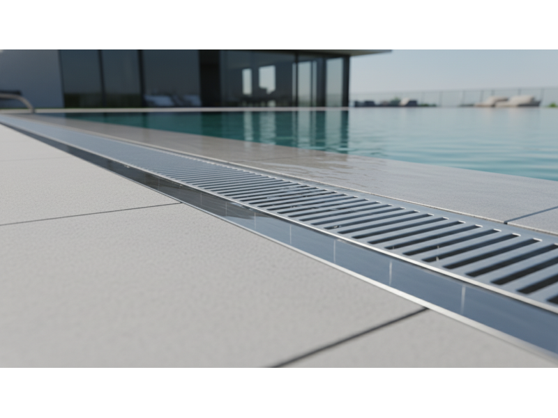 Противоскользящая поверхность (Anti Slip) — обязательна для общественных бассейнов по СП 31-113-2004. Для частных тоже рекомендуется: мокрый борту + шлепанцы = скользко. Решетки с Anti Slip имеют специальную текстуру или вставки. Стоит на 20-30% дороже, но безопасность важнее.