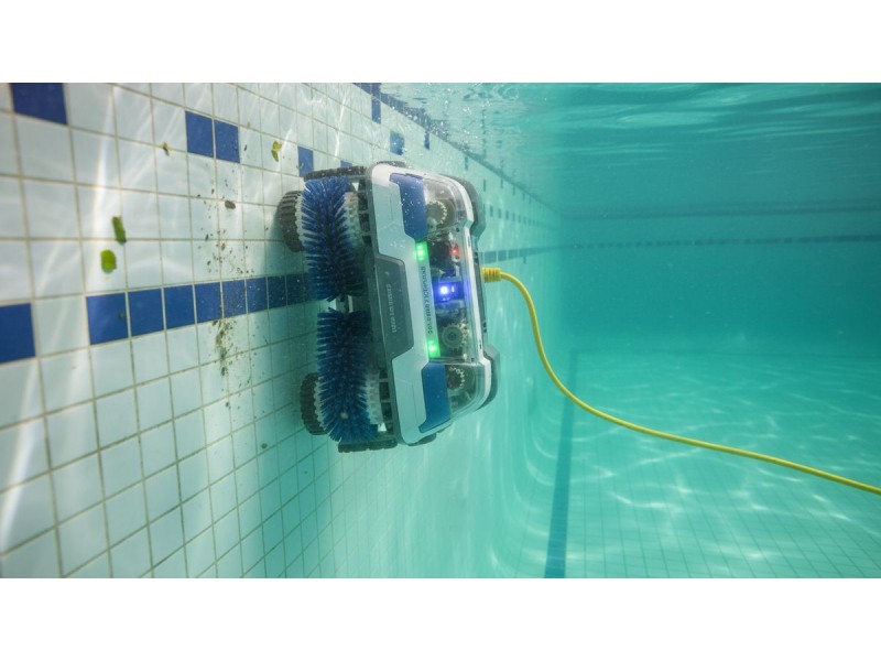 Робот с активным приводом колес. Забирается на стены и водную линию. Для бассейнов до 60 м2.