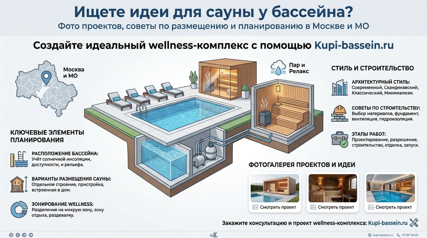 Компания Kupi-bassein.ru специализируется на создании таких комплексов. Давайте рассмотрим самые популярные и красивые проекты саун, расположенных рядом с бассейном, и вдохновимся на создание вашего идеального места отдыха в Москве и Московской области.