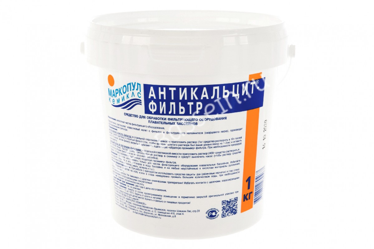 Эффективно растворяет известковый налет c фильтра и фильтрующего наполнителя (кварцевого песка),