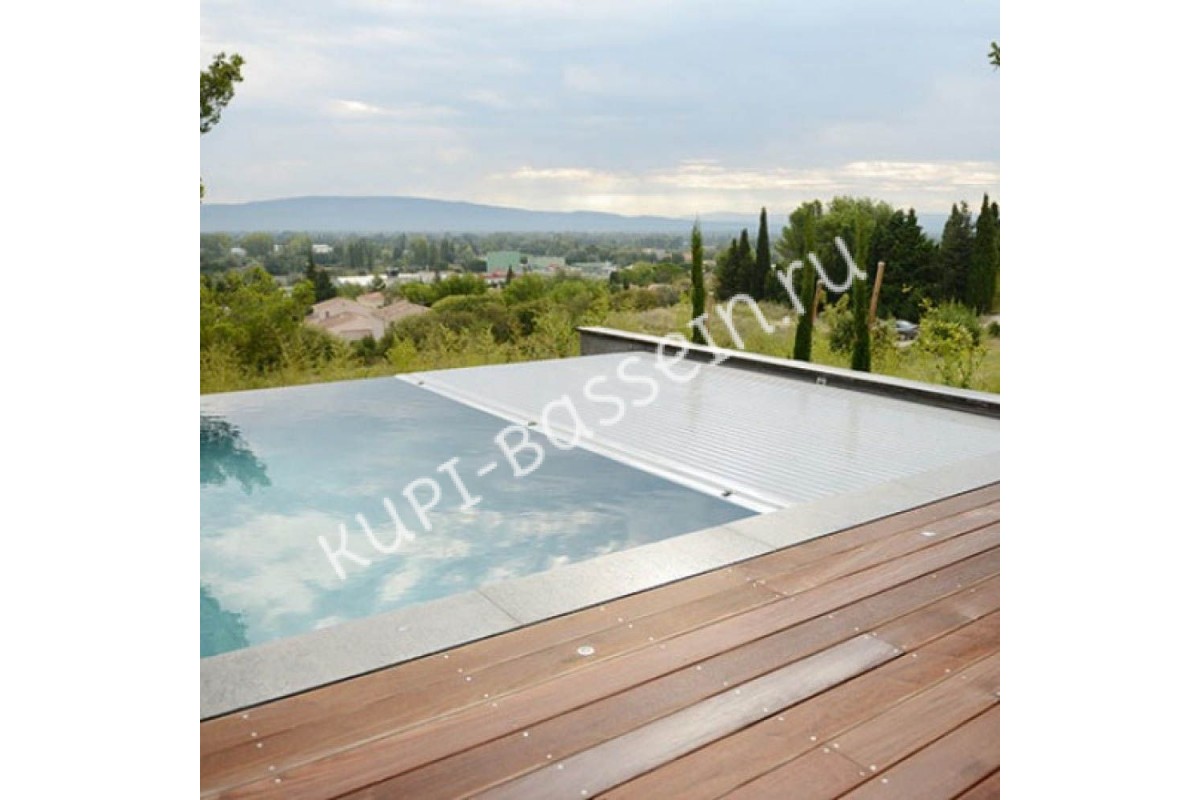 - ЭстетичностьПокрытие не закрывает пространство около бассейна. Обзор ландшафта обеспечивается на 360°. Когда бассейн открыт, ролета остается максимально незаметной