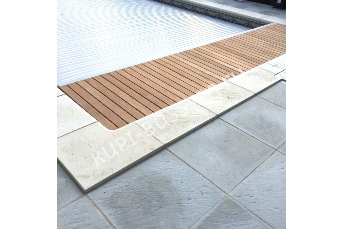 - Запатентованная система настилов:балки 150x100 мм из анодированного алюминия 20 мкм для фиксации ПВХ настила толщиной 20 мм, или IPE настила, устойчивого к загниванию и образованию щепок