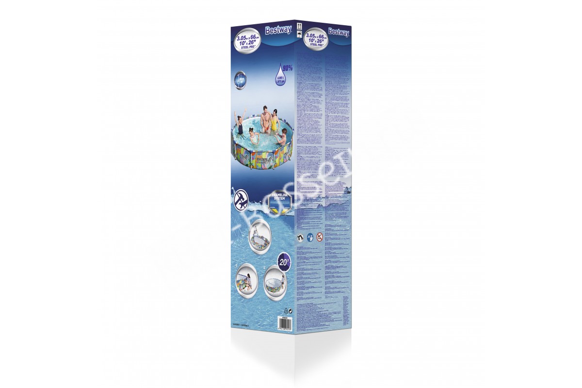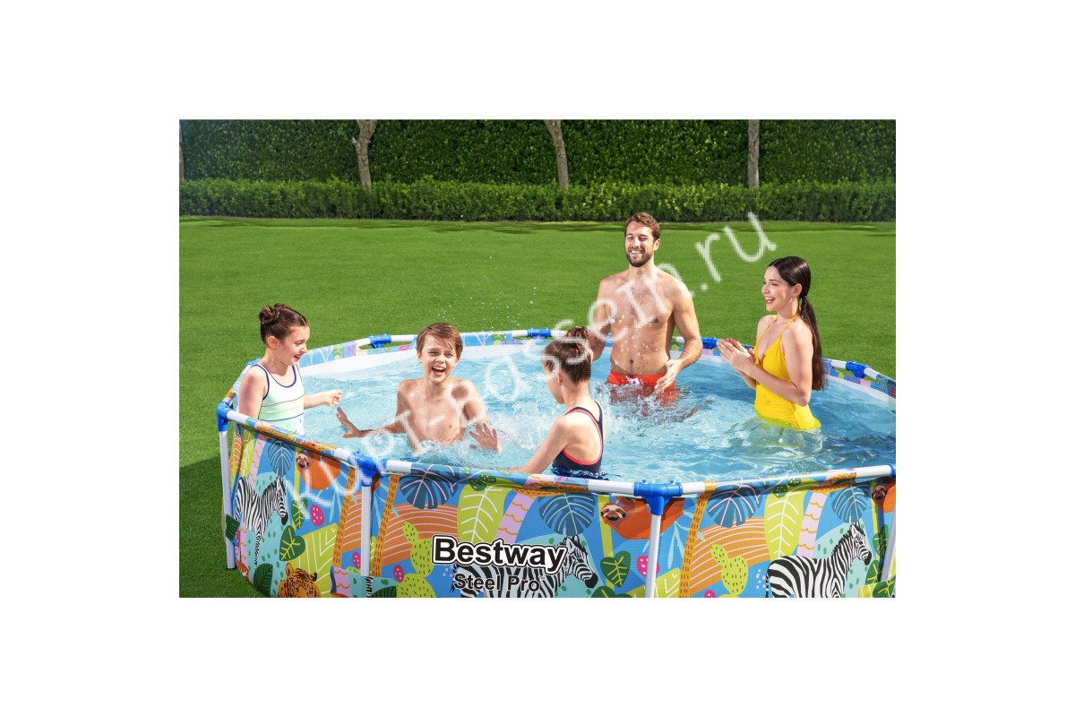 Простой и удобный бассейн Bestway 56985 серии Steel Pro - отличный вариант для сада, дачного участка или придомовой территории. Прочная стальная конструкция, устойчивая к воздействию коррозии, обеспечивает надежность и долговечность изделия. Отсутствие лишних элементов, легкость и скорость сборки, не требующая дополнительного инструмента, выделяет эту модель на рынке домашних наземных бассейнов. Габариты бассейна рассчитаны на семью 3-5 человек, с детьми возрастом от 4 лет.