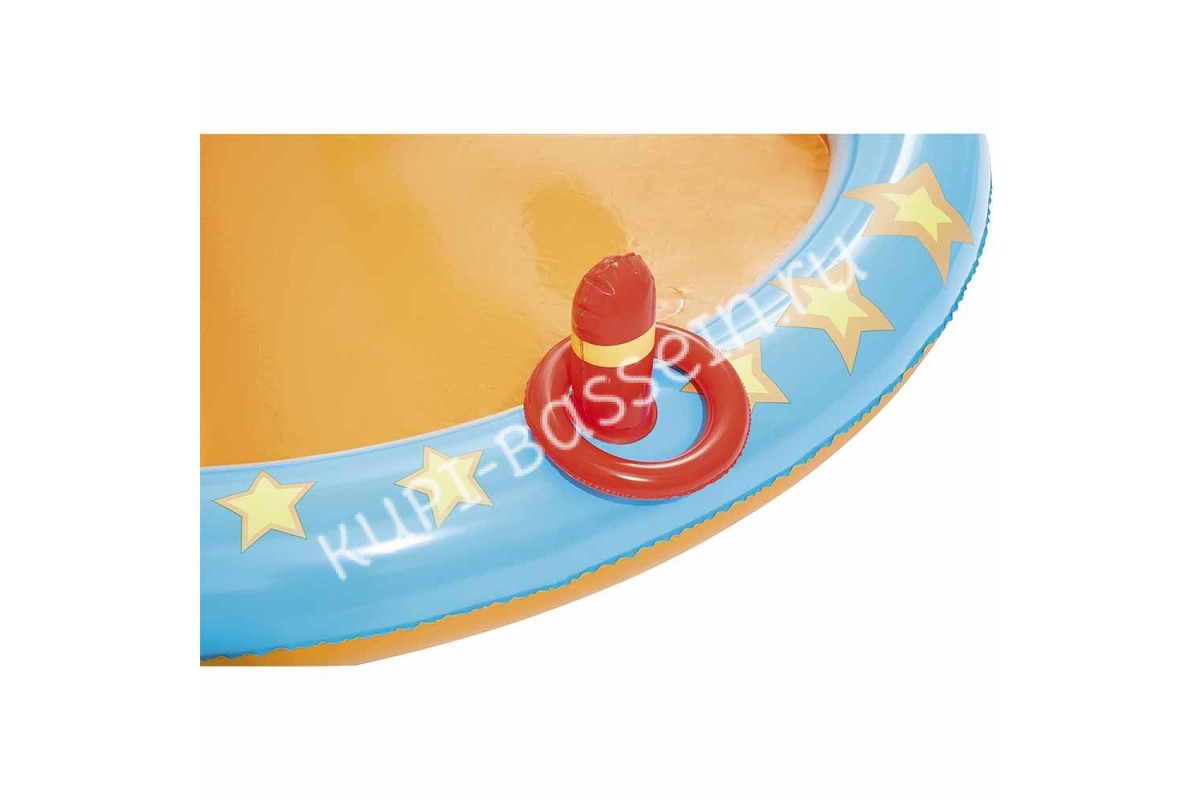 Яркие элементы бассейна подарят позитивные эмоции и надолго увлекут ребенка. Съемная горка для катания, веселый кегельбан, игра кольцеброс, баскетбольное кольцо и подвесной фонтан объединены на базе бассейна необычной формы.