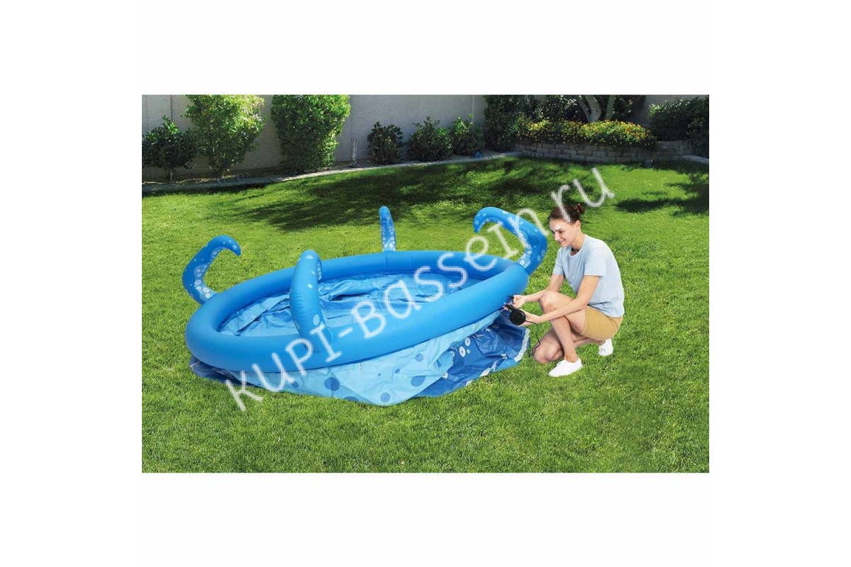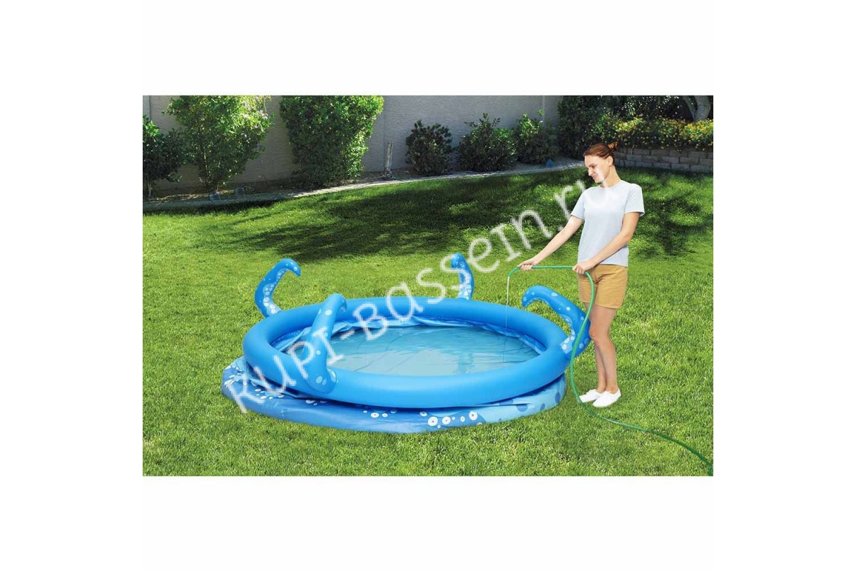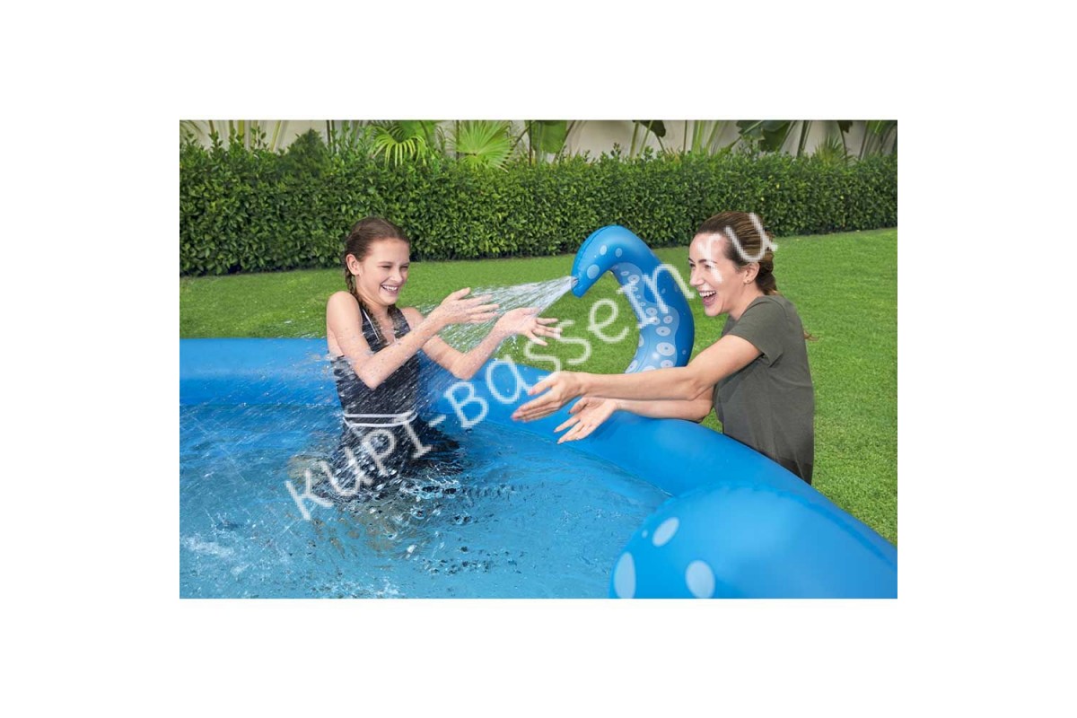 По периметру бассейна располагаются декоративные надувные щупальца. Двое из четырех щупальцев разбрызгивают освежающие струи воды.