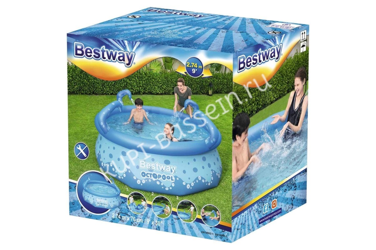 Надувной бассейн Bestway серии Fast Set - идеальный вариант для семейного отдыха. Благодаря оптимальным размерам, в бассейне комфортно размещается компания из нескольких человек. Оригинальное оформление привлекает внимание отдыхающих любого возраста. Диаметр бассейна составляет 2.41 м, высота борта - 0.76 м.