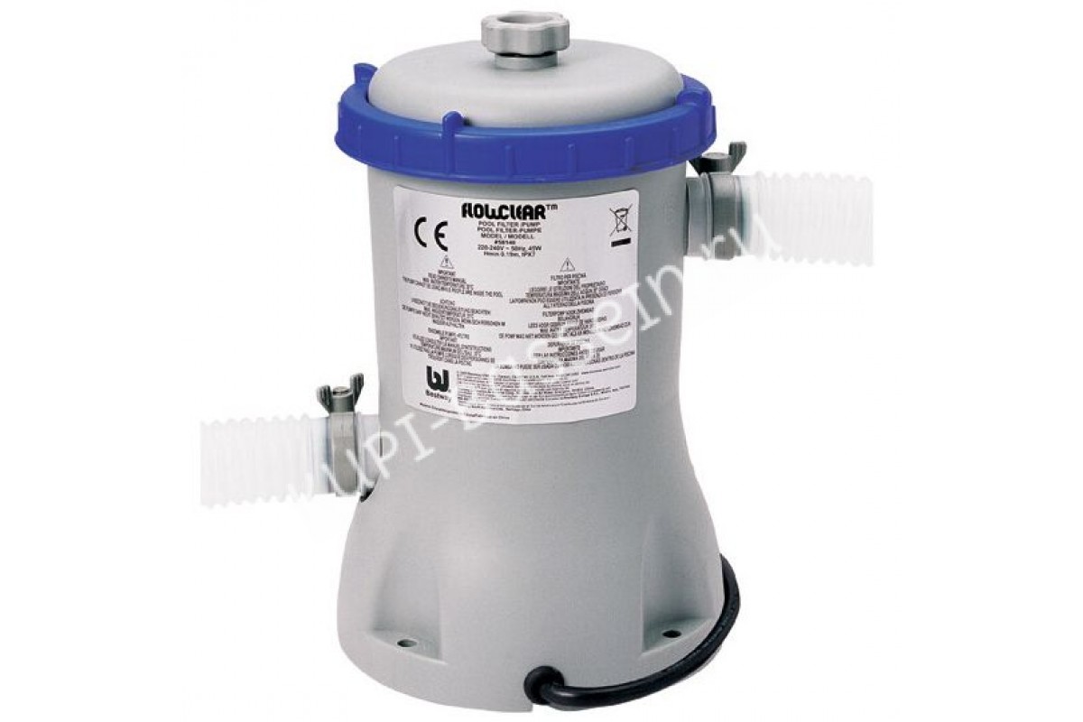 В комплекте с фильтрующей установкой поставляется картридж Bestway Flowclear 58094. Картриджи очищают воду от пыли, грязи и мусора благодаря большой площади фильтрующей поверхности из гофрированного текстильного материала. Чтобы обеспечить максимальную эффективность очистки воды, ежедневно промывайте фильтрующий блок под проточной водой. Полная замена картриджа требуется не чаще одного раза в две недели.