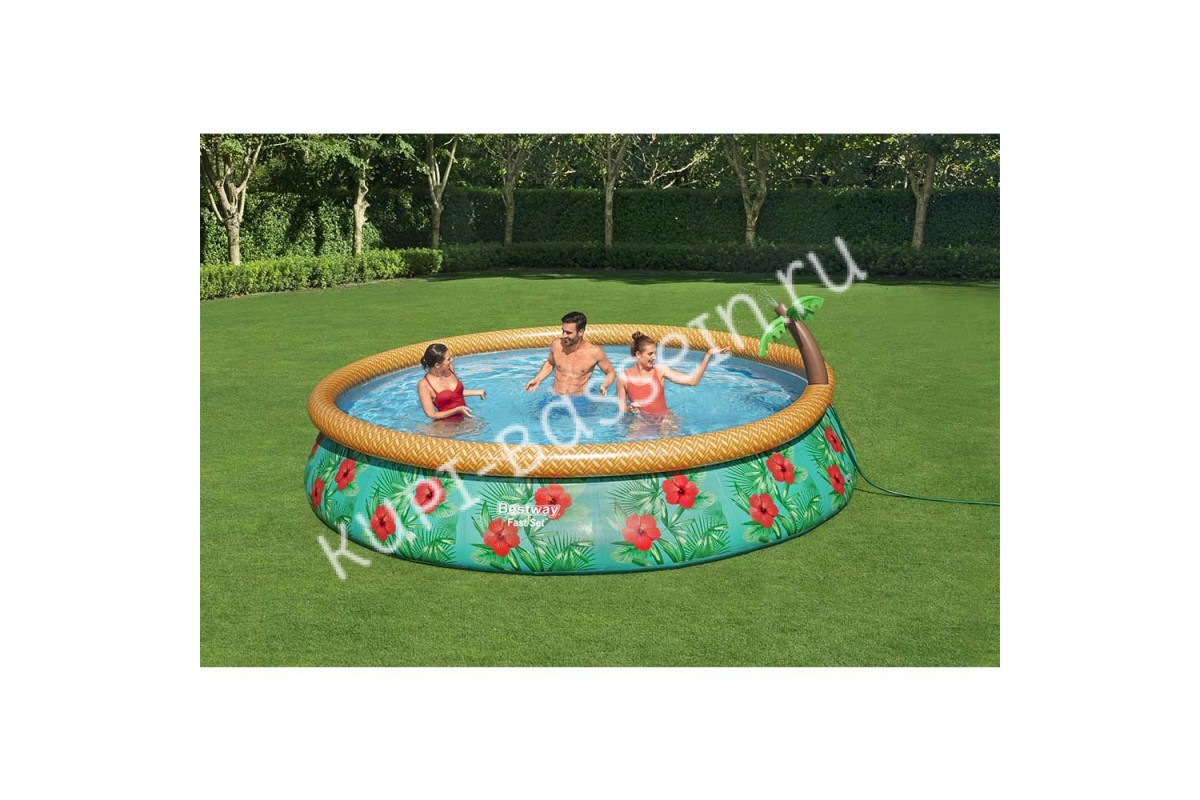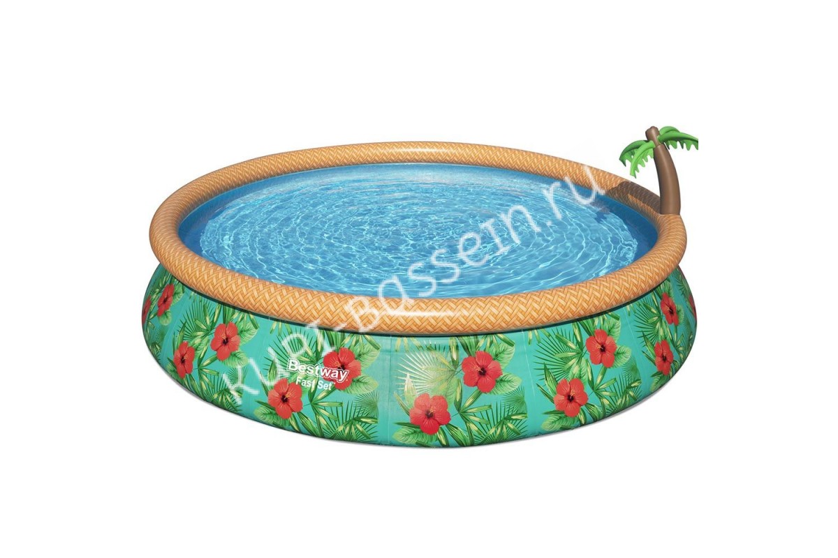 Круглый надувной бассейн Bestway Paradise Palms серии Fast Set - это отличный вариант для семейного отдыха и водных развлечений. Тропическая расцветка придает бассейну оригинальности. Диаметр бассейна составляет 4.57 м. Высота борта - 0.84 м.