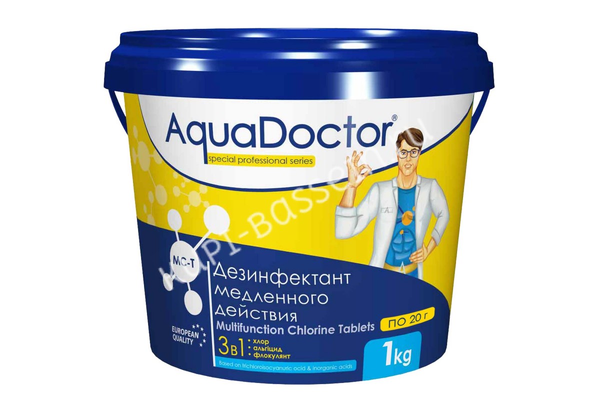 Содержит активный хлор (для дезинфекции), альгицид (для устранения водорослей) и коагулянт (для прозрачности водной массы). Препарат AquaDoctor МС-Т предназначен для регулярной обработки воды в бассейне. Эффективно и быстро уничтожает бактерии, грибки, вирусы и водоросли, а также оказывает разрушительное воздействие на органические вещества, вызывающие помутнение и загрязнение воды. Средство содержит обеззараживающие компоненты, состав против водорослей и флокулянт, усиливающий чистоту и прозрачность воды в резервуаре.