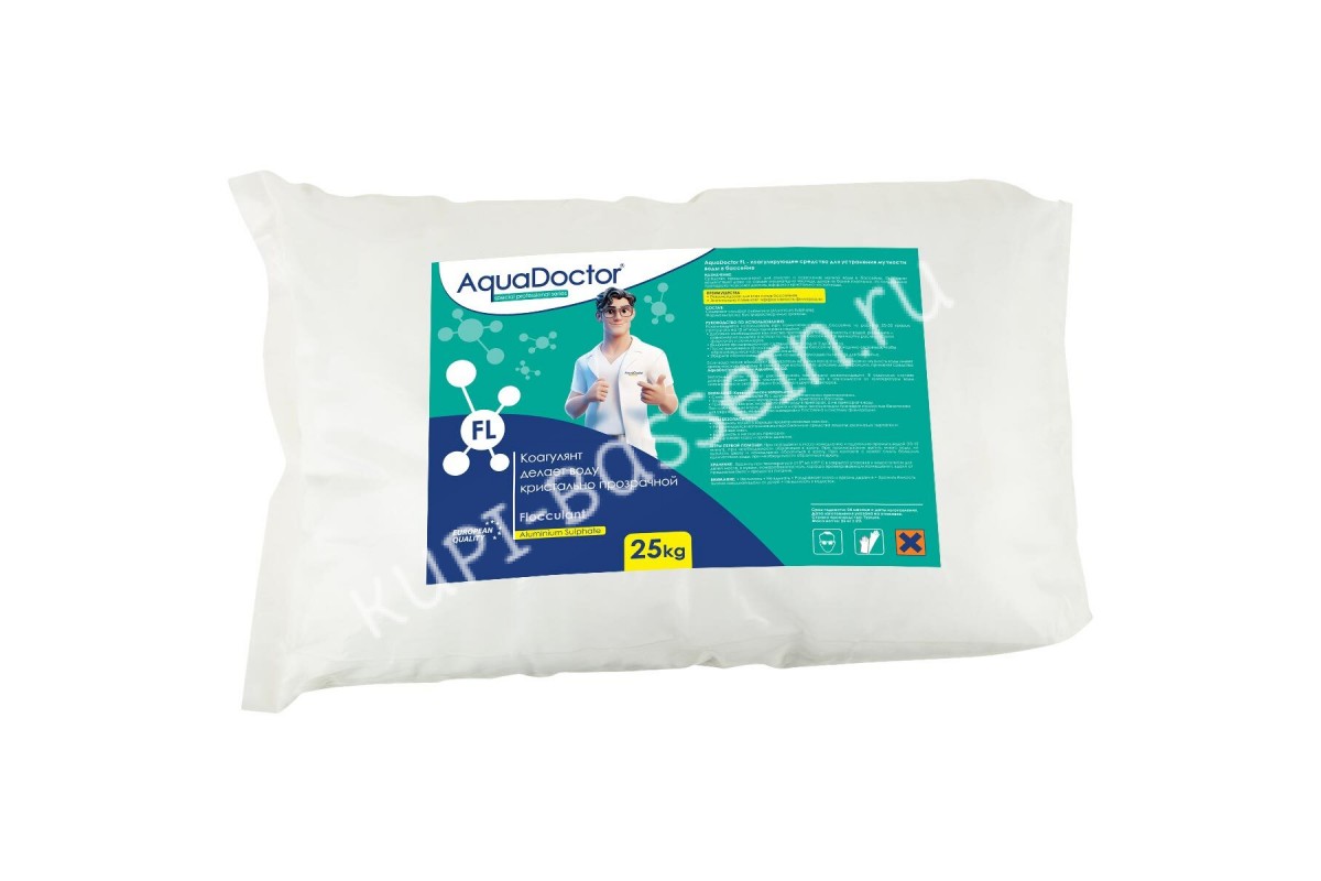 Основу препарата AquaDoctor FL составляет сульфат алюминия (Aluminium Sulfate). Вещество не восприимчиво к термическим условиям среды, благодаря чему активно воздействует на взвешенные частицы находящиеся в воде, образуя на них хлопьевидный осадок. В результате частицы не только увеличивают свой размер, но также и вес. Самые мелкие из них подвергаются загустению и остаются в толще воды, крупные – оседают на дно. Кроме того, процесс коагуляции усиливает действие дезинфицирующих средств, применяемых в бассейне. Производимая реакция повышает эффективность процедуры очистки бассейна.