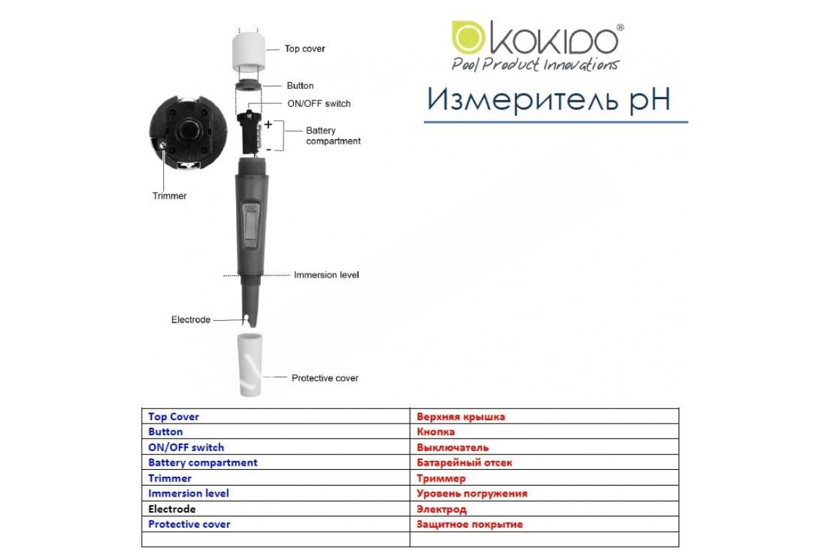 Правильная периодическая проверка состояния воды в бассейне является залогом комфортного и здорового купания в нем. В случае нарушения баланса водородного показателя pH воды, эффективность ее химобработки значительно уменьшается. Также такая вода становится причиной раздражения слизистой человека, ускоренного износа материалов бассейна и его системы фильтрации. Нормой показателя pH бассейна считается 7.2-7.6, однако специалисты рекомендуют поддерживать уровень в 7.2-7.4. Чтобы быстро и эффективно проверить соответствие уровня pH воды бассейна своей норме рекомендуется использовать портативный тестер Kokido K977CS. Этот удобный автоматический прибор фиксирует значения pH в диапазоне от 14 единиц до 0 и может использоваться как в бытовых, так и в промышленных условиях.