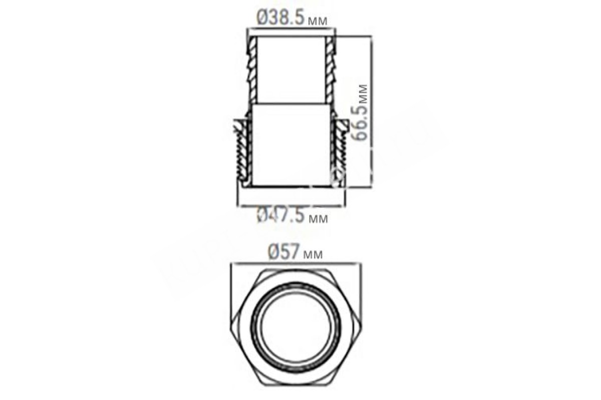Соединение: 38 мм х1.5"Длина: 66.5 мм