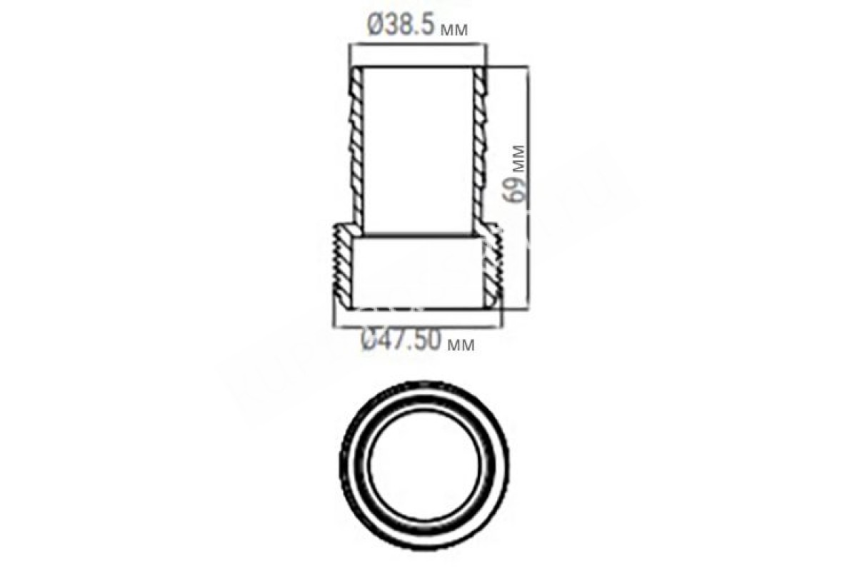 Соединение: 38 мм х1.5"Длина: 69 мм