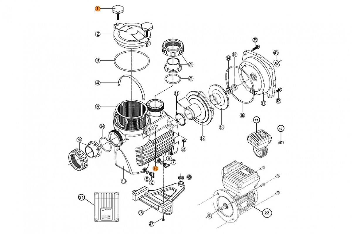 Поз. №1, 6 - Болт (2 шт.) крышки префильтра насоса KS в компл. с гайкой (2 шт.) Kripsol