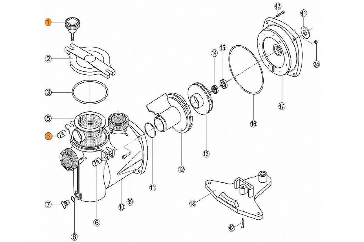 Поз. №1, 6 - Болт с гайкой крышки префильтра насоса NK Kripsol