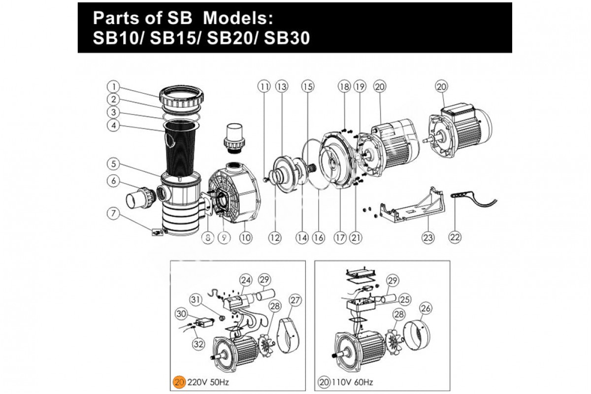 Поз. №20 - Двигатель к насосу SB20 (220В) Emaux