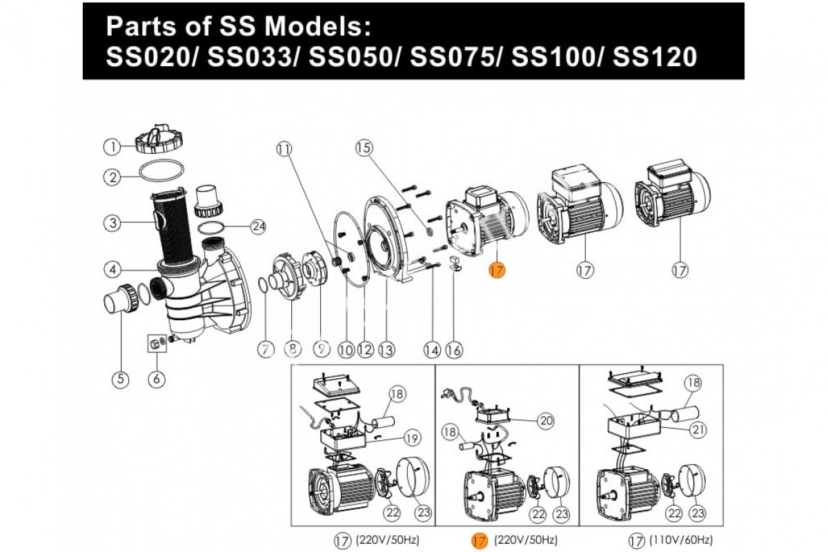 Поз. №17 - Двигатель к насосу SS100 (220В) Emaux