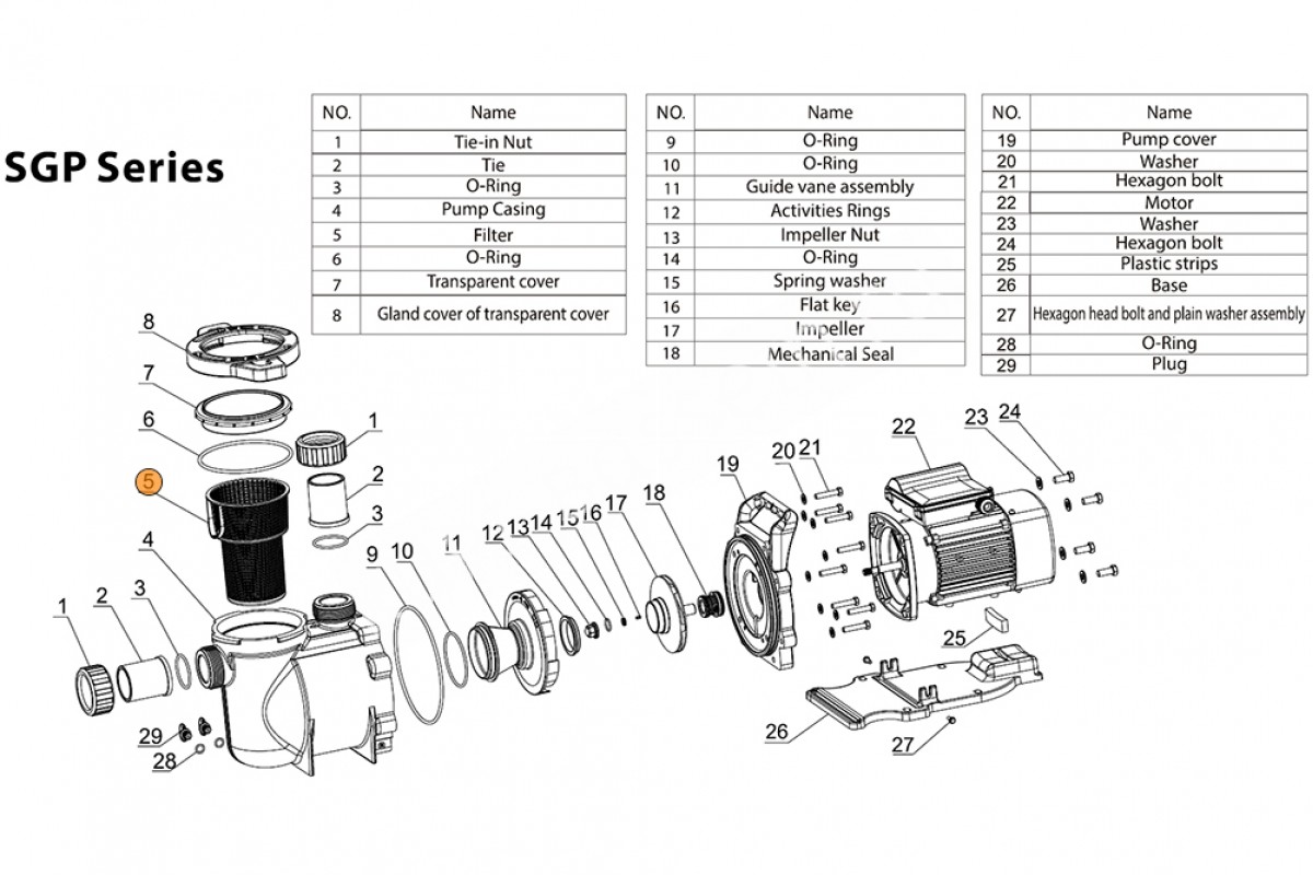 Поз. №5 - Фильтр грубой очистки насоса SGP Mayer Schwimmbad LX
