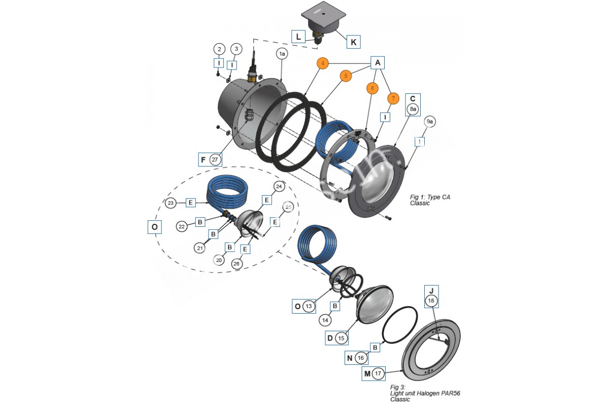 Поз. №4-7 - Фланец-кольцо прожектора с резиновыми прокладками и винтами Pahlen