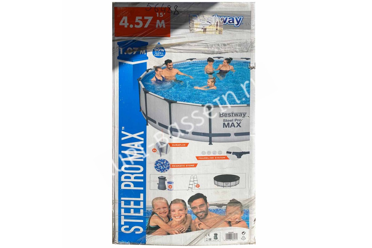 Каркасный бассейн Bestway 56488 (457х107см, карт. фильтр, лестница, тент) Уценка
