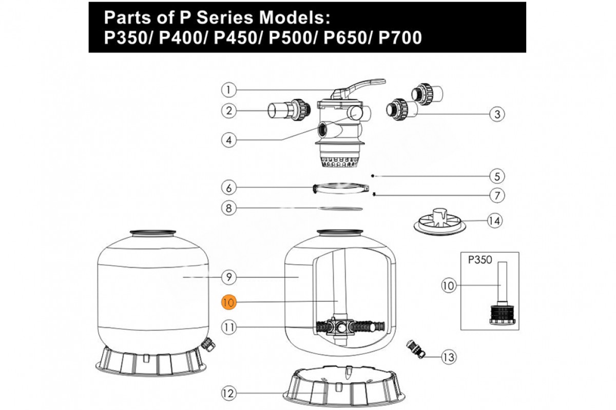 Поз. №10 - Коллектор фильтра серии P-500 с трубой, он же "Дюзовая коробка в комплекте с трубой для Aquaviva P500"