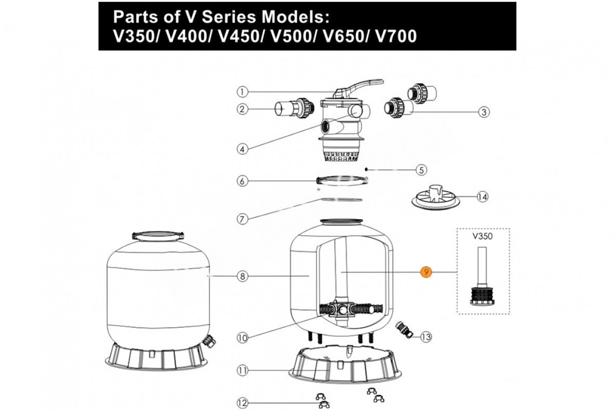 Поз. №9 - Коллектор фильтра серии V-700В с трубой