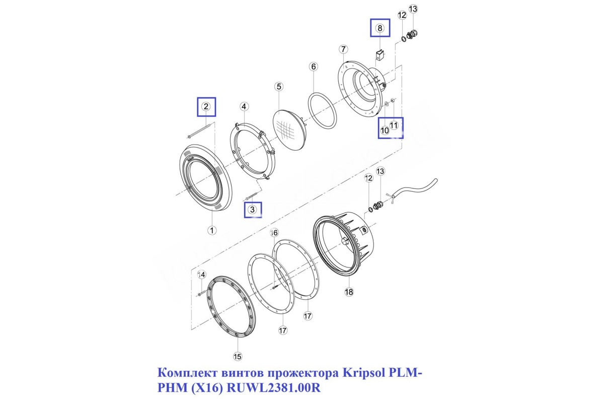 Комплект винтов прожектора Kripsol PLM-PHM (X16) RUWL2381.00R