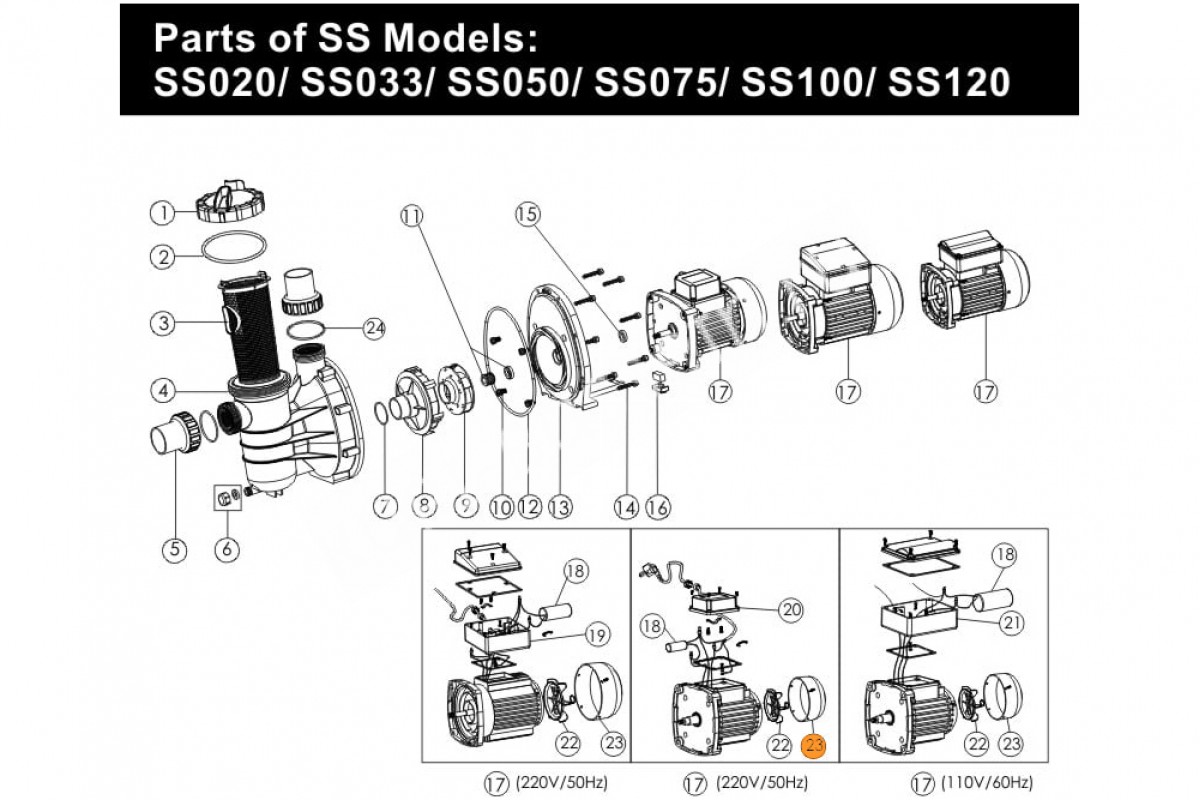 Поз. №23 - Кожух вентилятора насоса SS020 - SS030 Emaux