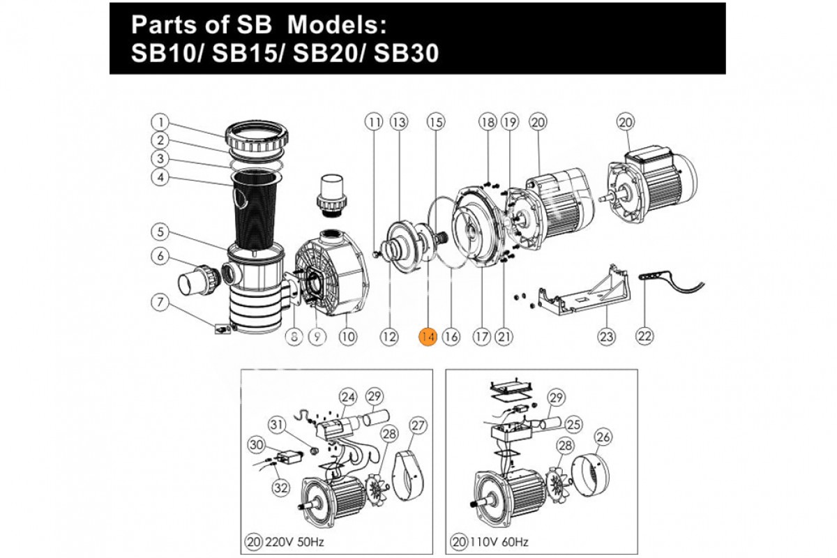 Поз. №14 - Крыльчатка насоса SB15 Emaux, Альтернативное название Крыльчатка для насоса Aquaviva SB15 (1311005)