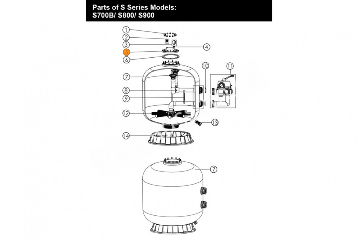 Поз. №5 - Крышка бочки фильтра S700-S900 Emaux (серого цвета), Альтернативное название Крышка для фильтра Aquaviva S700-S900 (1172005)