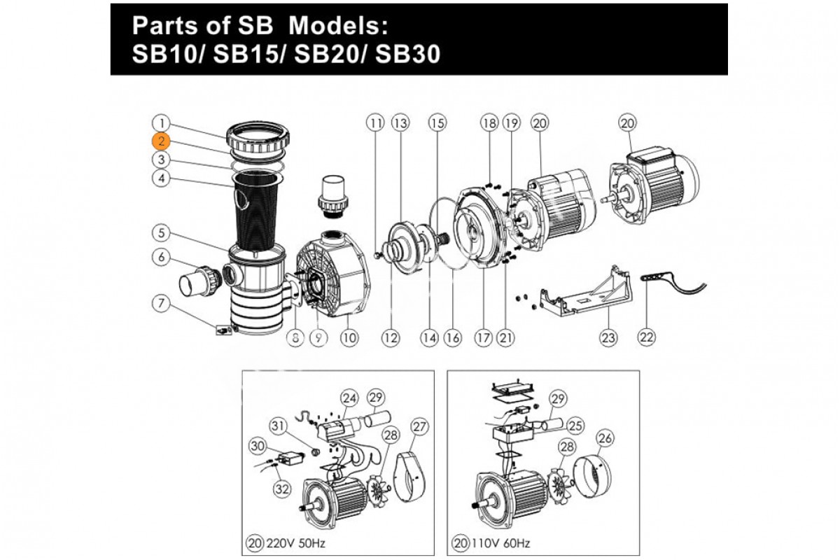 Альтернативное название: Крышка для насоса Aquaviva серии SB (1041022)