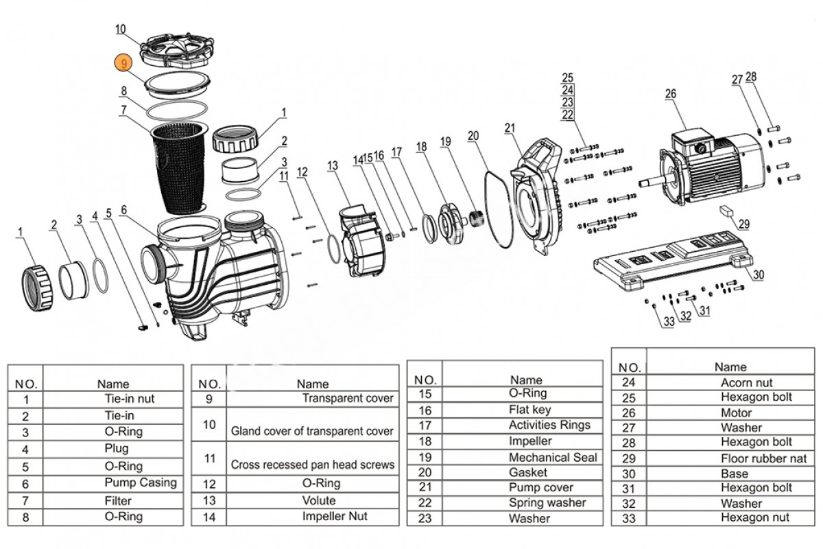 Поз. №9 - Крышка префильтра насоса SLP Mayer Schwimmbad LX