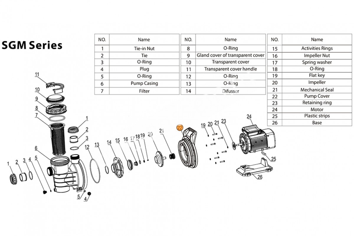Поз. №22 - Крышка задняя насоса SGM Mayer Schwimmbad LX