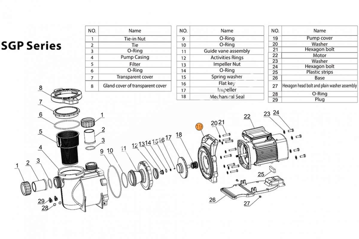 Поз. №19 - Крышка задняя насоса SGP Mayer Schwimmbad LX