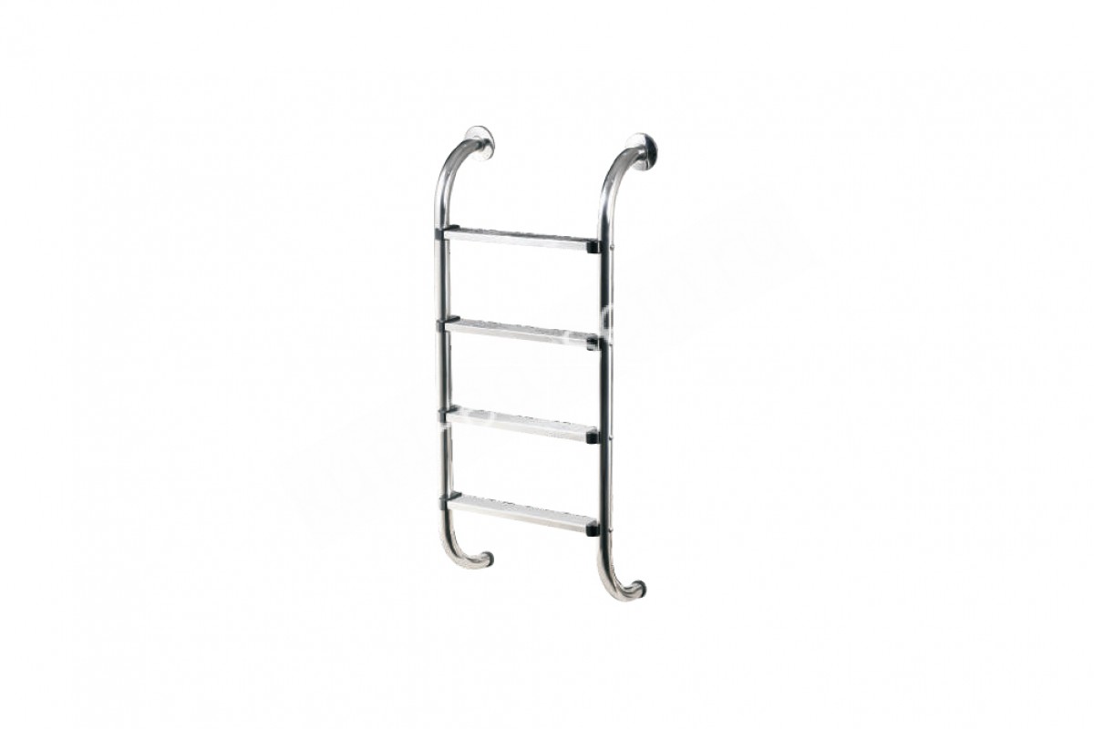 Состоит из двух ступенек ,изготовленных из нержавеющей стали AISI-304. Крепление в стену фланцевое, снизу лестница упирается в стену бассейна через резиновые заглушки.