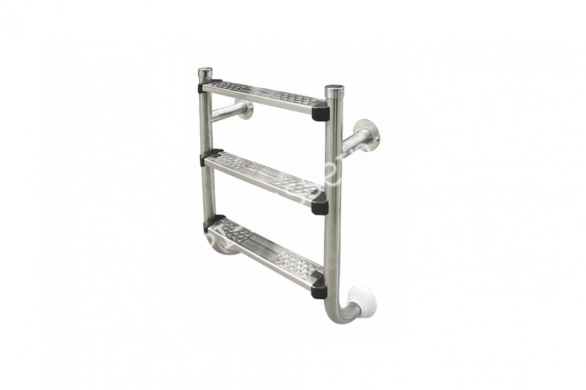 КНРСостоит из четырех ступенек, изготовленных из нержавеющей стали AISI-304. Крепление на стену с помощью фланцев, которые в свою очередь крепится к обратной фланцевой части с закладной, снизу лестница упирается в стену бассейна через резиновые заглушки. Лестницы с фланцевым креплением и комплект закладных деталей изготавливаются индивидуально под заказ. Срок производства: 7-14 дней с момента оформления заказа. Возможность изгототовить для любой лестницы или поручня из нержавеющей стали. Индивидуальный подход к каждому заказу позволяет создать оптимальное решение для вашего объекта. Мы гарантируем высокое качество материалов и точность изготовления всех элементов конструкции.