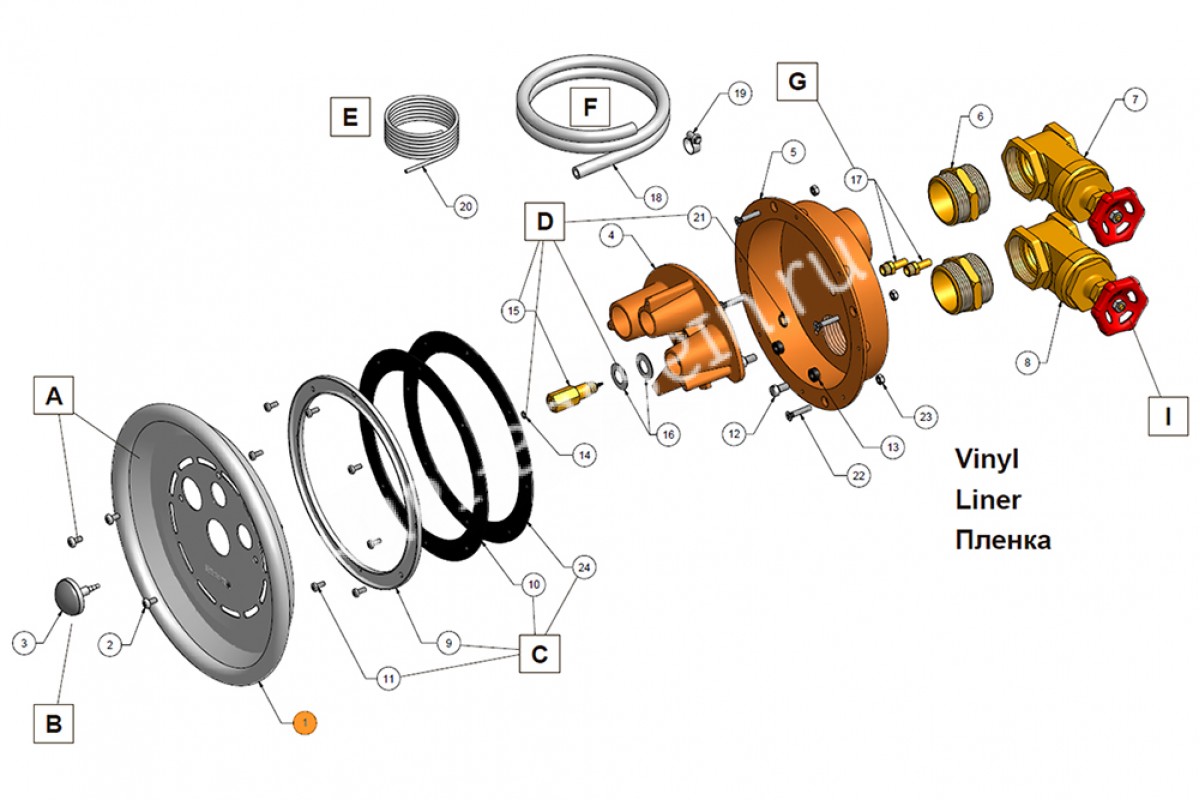 Поз. №1 - Лицевая декоративная деталь закладного узла против.Jet Swim 1200 Pahlen
