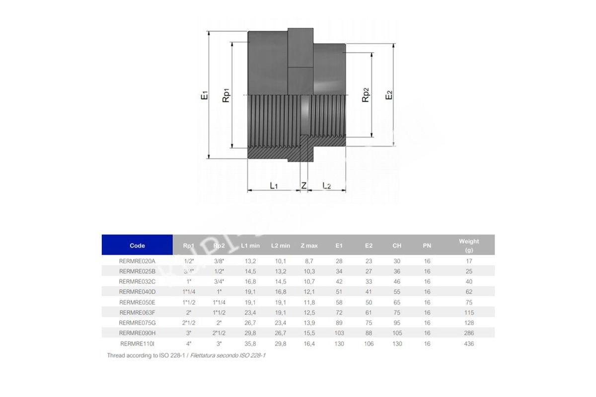 Муфта ПВХ Effast RERMRE040D редукционная, с внутренней резьбой d1-1/4"х1"