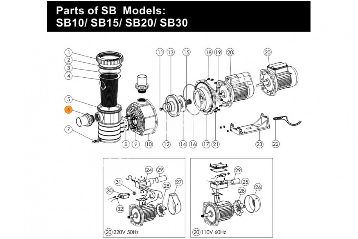 Поз. №6 - Муфта разъёмная с внешней резьбой 2" 6-ти поз. вентиля/насоса SB Emaux