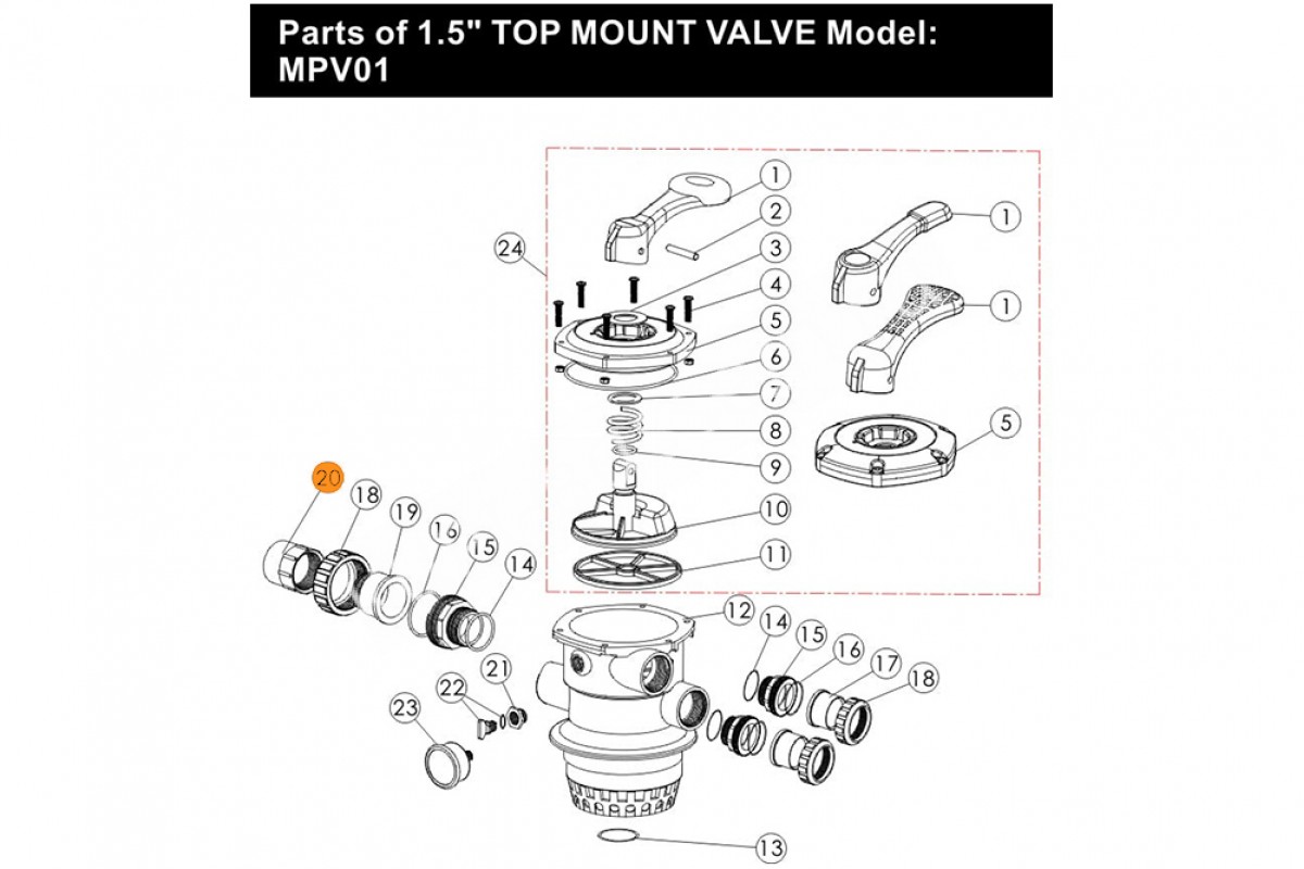 Поз. №20 - Муфта с внутр.резьбой смотрового окна муфты 6-ти поз.вентиля 1 1/2" Emaux для вентилей MPV01, MPV03