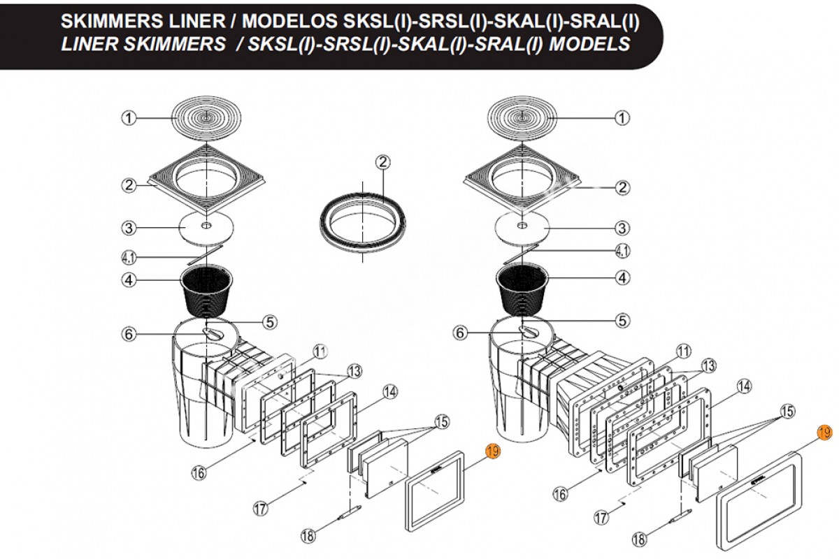 Поз. №19 - Накладка декор. рамки скиммера SKSL Kripsol, Альтернативное название Лицевая рамка скиммера Kripsol Standart SKSL RSK180.A/ R1230180.0 /RSKI0019.01R