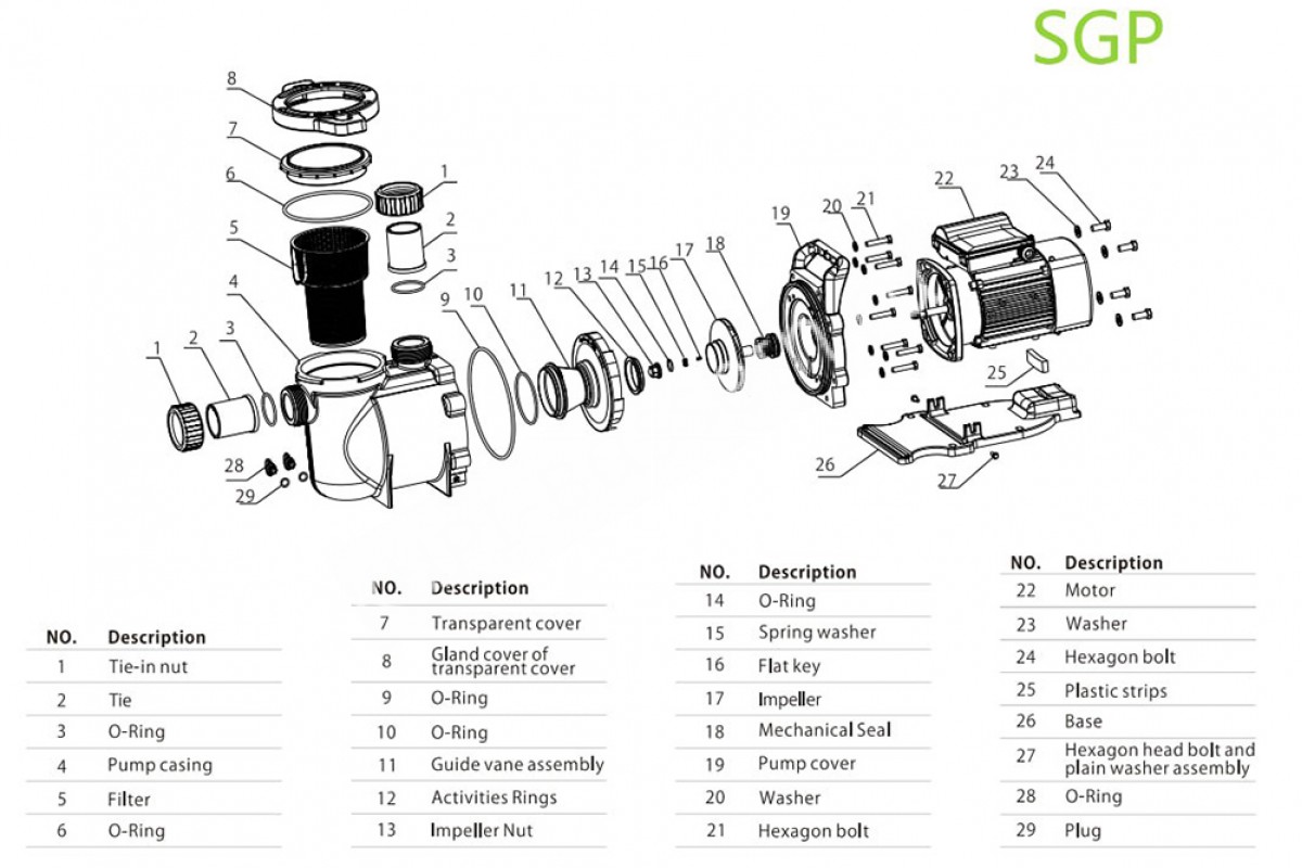 Насос (1,5кВт 220B 24,8 м3/ч h 8м в.ст.) Mayer Schwimmbad LX SGP200 является одноступенчатым насосом с горизонтальным расположением вала и рабочим колесом (крыльчаткой) одностороннего входа. Привод насоса электрический. Насос оснащен фильтром грубой очистки. Насосы серии SG являются высокоэффективными, устойчивыми к коррозии, энергосберегающими агрегатами с длительным сроком службы.