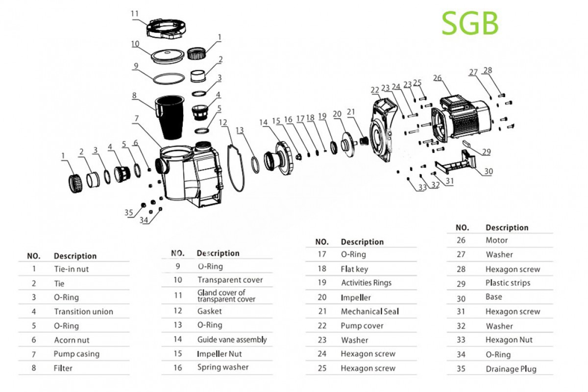 Насос (2,2кВт 380B 31,6 м3/ч h 8м в.ст.) Mayer Schwimmbad LX SGB300T является одноступенчатым насосом с горизонтальным расположением вала и рабочим колесом (крыльчаткой) одностороннего входа. Привод насоса электрический. Насос оснащен фильтром грубой очистки. Насосы серии SG являются высокоэффективными, устойчивыми к коррозии, энергосберегающими агрегатами с длительным сроком службы.