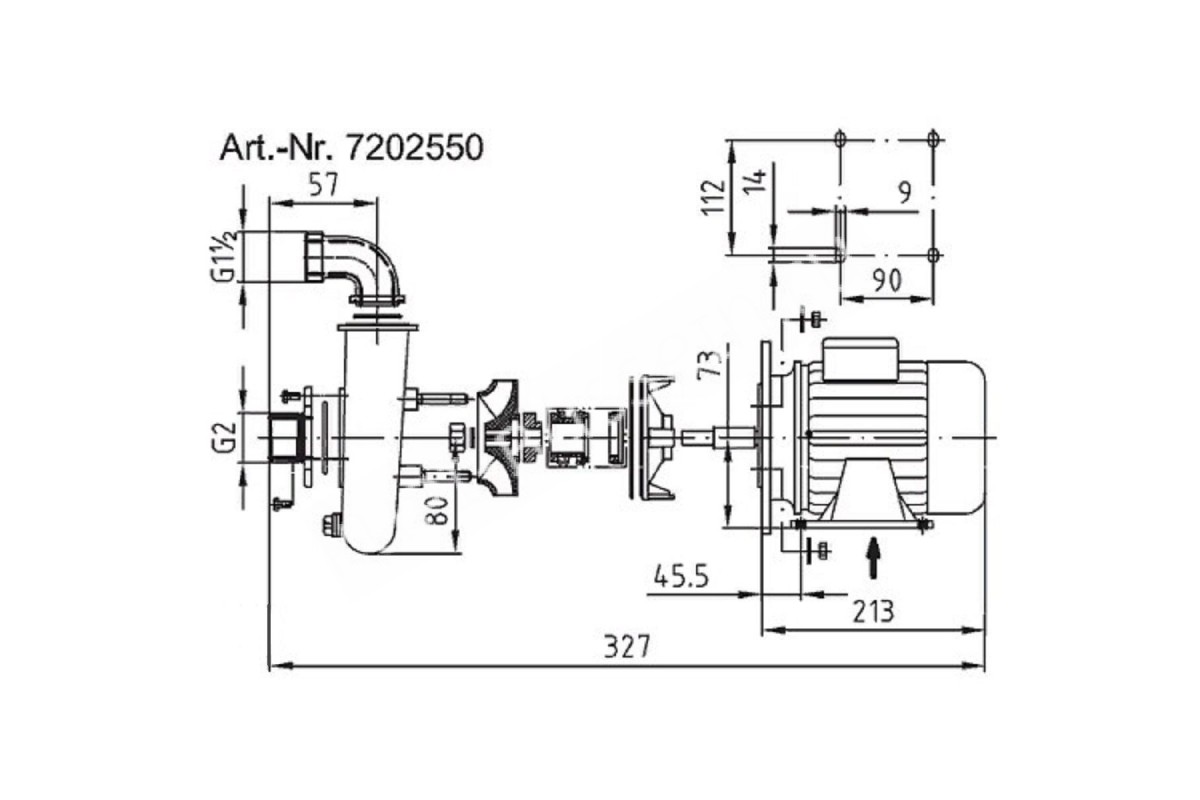 Насос Fitstar 7202550 (220В, без пф, 7.5м3/ч, 0.5Квт) всас. вых. НР 2", напорн. вых. 90° НР 1 1/2"