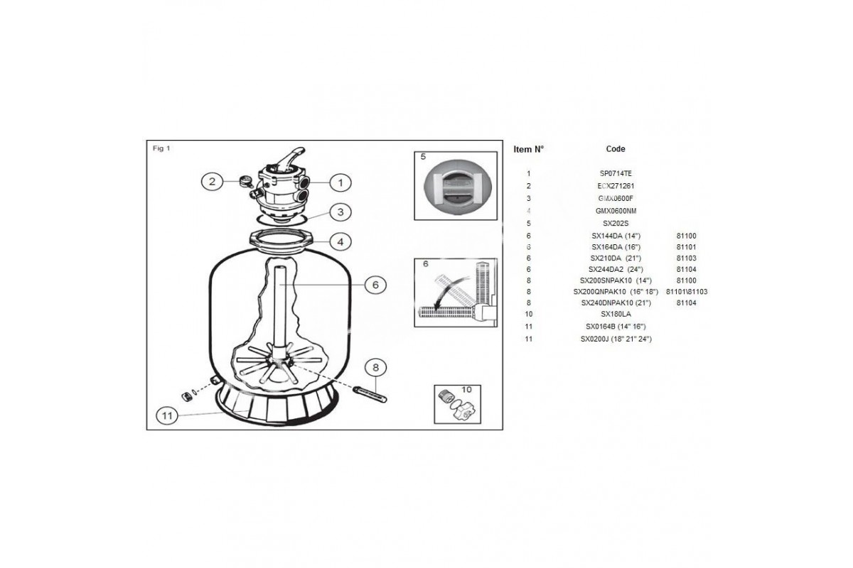 Фильтрационная система оснащена 6-позиционным клапаном для переключения режимов.