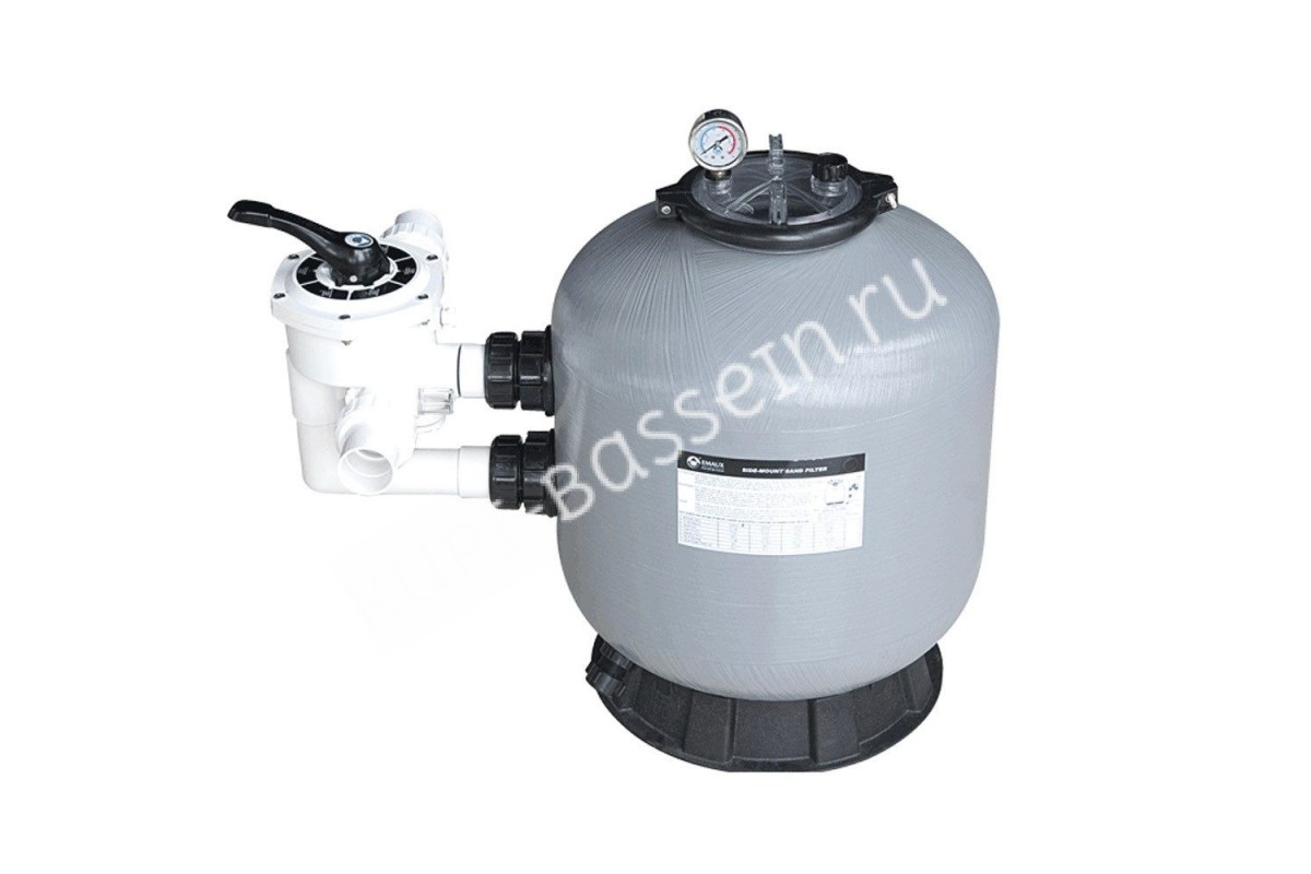 Модель S450 имеет потенциал фильтрации до 8,10 м³/час и является лучшим решением для бассейнов всех типов емкостью до 33 тыс.л. Механическая очистка воды производится за счет слоя песка, который загружается через верхнюю горловину бочки. В фильтре рекомендуется применять кварцевый или стеклянный песок, с фракцией 0.5 - 0.8 мм. Масса засыпки составляет до 45 кг. Фильтр оснащен 6-режимным клапаном управления фильтрацией Aquaviva. Тип подключения фильтра – боковой. Диаметр подключения стандартный – 1.5 дюйма (50 мм).