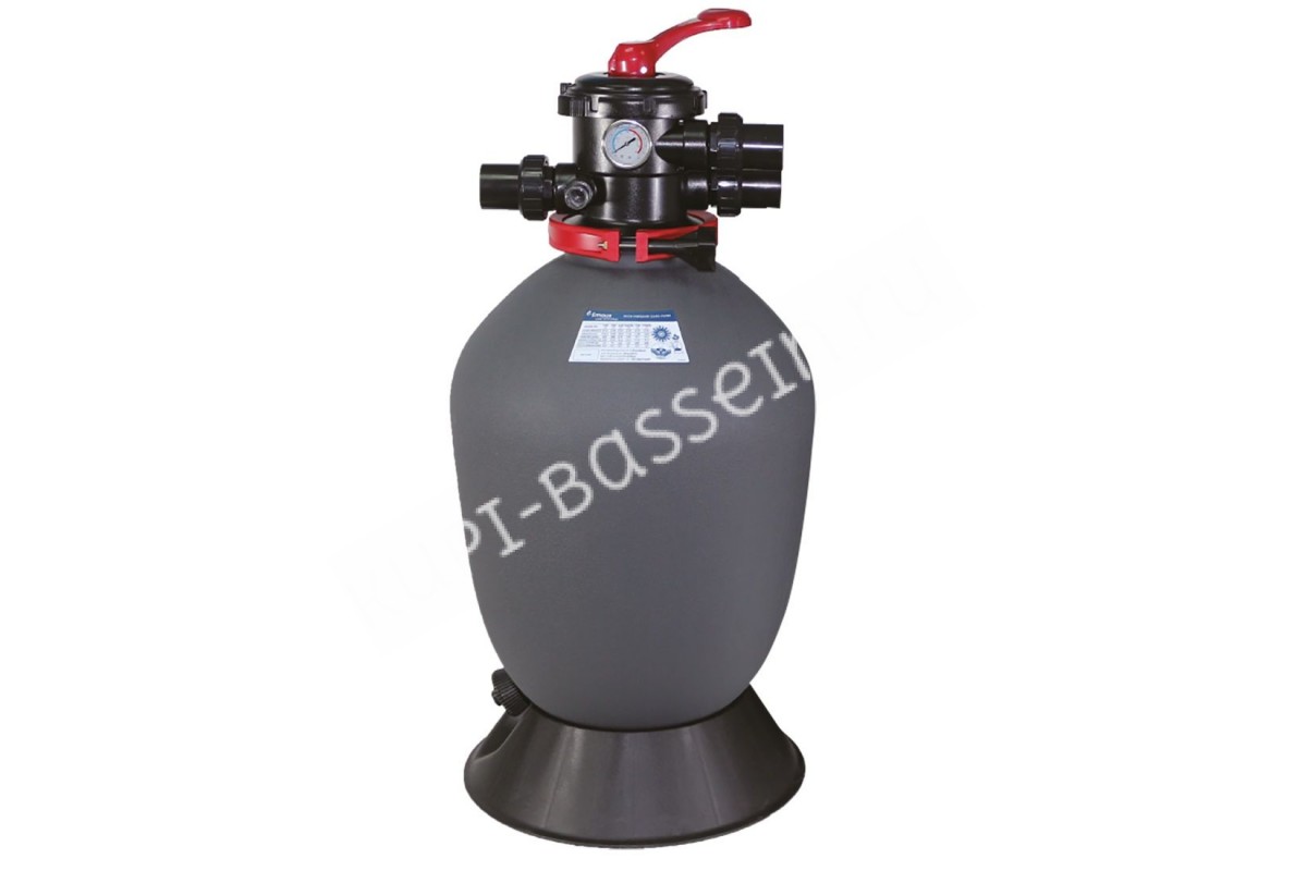 Емкость фильтра заполняется стеклянной или кварцевой засыпкой массой до 95 кг, при фракции наполнителя 0.5-0.8 мм. Комплектация включает в себя шестипозиционный клапан обновленного дизайна с муфтами под трубу 1.5''/50 мм и манометр.