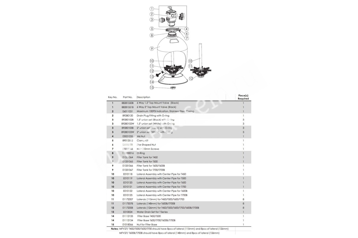 Механическая прочность бака делает допустимой работу даже при давлении 4 бара и повышенных температурах воды. В результате этот фильтр превосходит аналоги в вопросах долговечности и сферы применения. Площадь фильтрации модели T600В составляет 0.29 кв.м. Заполняют бочку стеклянной или кварцевой засыпкой общей массой до 165 кг. Размер фракции – 0.5-0.8 мм. Комплектуется 6-ти позиционным клапаном и муфтами под вклейку - 2''/63 мм.